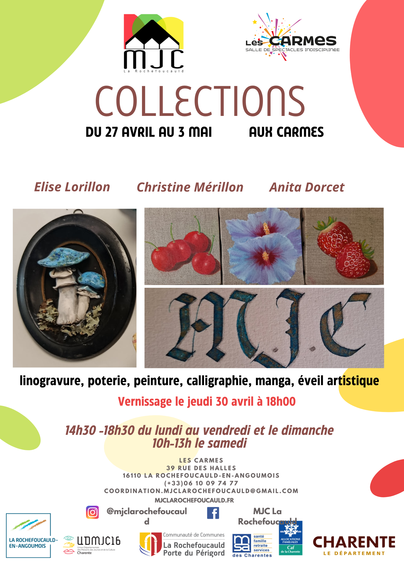 La MJC organise du 27 avril au 3 mai une exposition dans la salle des Carmes de la Rochefoucauld. Les adhérents des ateliers peinture, calligraphie, Poterie, Linogravure, éveil artistique auront le plaisir de présenter leurs œuvres au grand public. Exposition ouverte à tous - accès gratuit  - ouverture tous les après-midi de 14h30 à 18h30 […]